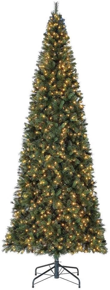 Home accents holiday 12 ft wesley long needle pine led pre lit artificial christmas tree with 1100 surebright warm white lights home depot 49900. It boasts 2850 lush evergreen branch tips for a full appearance and ample room to showcase your favorite ornaments. Made with a foot pedal for easy light operation you can assemble this tree in fewer than 10.