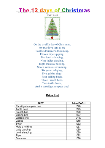 - Maths Ed Ideas Problem The 12 Days Of Christmas