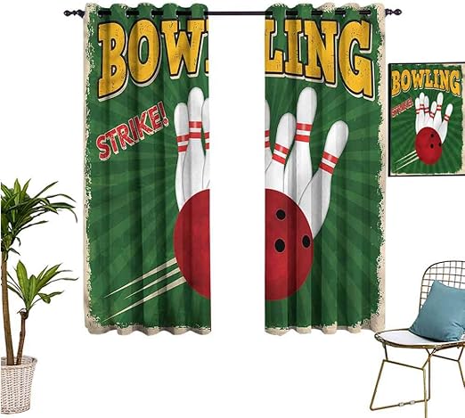 Amazon Com Aishare Store Room Darkening Thermal Window Curtain Vintage Bowling Strike Green 48 Inches Long Blackout Curtains For Nursery Set Of 2 Panels Home Kitchen
