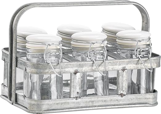 Amazon Com Fiddle And Fern Spice Jars With Galvanized Caddy Old Fashioned Glasses Glassware Drinkware