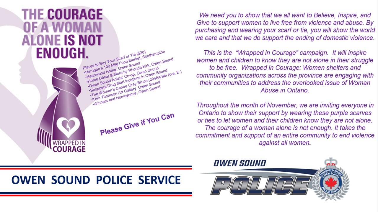 Owensoundpolice On Twitter We Are Inviting Everyone In Ontario To Show Their Support By Wearing Purple Scarves Or Ties To Let Women Their Children Know They Are Not Alone The Courage